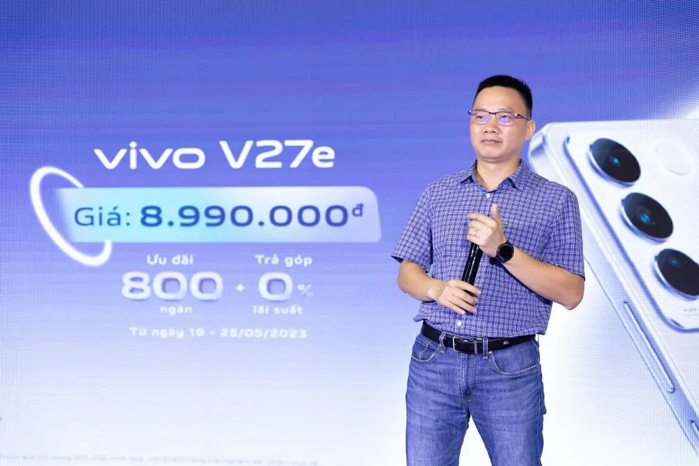 vivo V27e với giá bán 8.990.000 đồng và chính thức được mở bán vào ngày 18-5-2023 trên nền tảng điện tử và các cửa hàng bán lẻ như Thế Giới Di Động, Viettel Store, CellphoneS, Siêu thị Điện máy Chợ Lớn... với ưu đãi hấp dẫn giảm ngay 800.000 đồng, hỗ trợ trả góp 0% dành riêng cho 2.000 suất mua đầu tiên từ ngày 18 đến 25-5-2023.