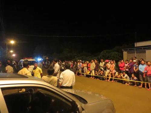 Người dân hiếu kỳ tụ tập bên ngoài nhà nạn nhân.