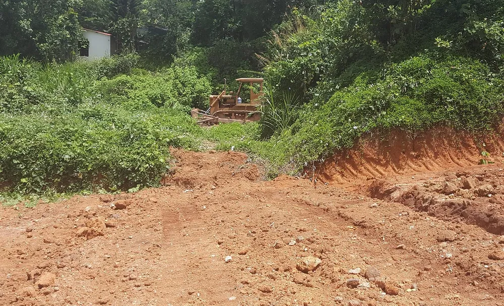 Ghi nhận tại khu vực cạnh đèo Mimosa, thuộc địa bàn tổ Sở Lăng, phường 10, TP Đà Lạt, sáng 26-6, một chiếc xe múc vô tư hoạt động san gạt trên khoảnh đất rộng hơn 7.000m2.