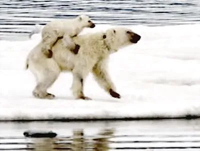 Khảo sát gần đây cho thấy, gấu Bắc cực ở khu vực biển Beaufort (phía Bắc Alaska và Canada) phải vượt qua 687km đường biển (gấp 7 lần quãng đường trung bình) trong điều kiện 2-60C để đến những biển băng để săn hải cẩu – thức ăn chính của chúng. Biến đổi khí hậu làm băng tan nhanh, gấu Bắc cực phải bơi xa hơn rất nhiều nếu không muốn chết đói.