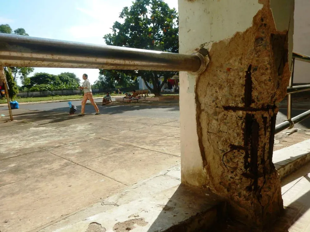 Một số chân trụ nâng đỡ 4 tầng lầu của bệnh viện bị nứt toác, trơ sắt hoen rỉ