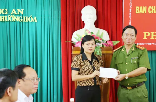 Bà Hồ Thị Lệ Hà, Bí thư Huyện ủy Hướng Hóa, chúc mừng và tặng thưởng lực lượng tham gia phá án