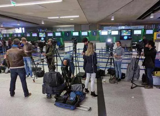 Báo chí tập trung trước khu vực check-in của EgyptAir tại sân bay Charles de Gaulle ở Paris. Ảnh: AP