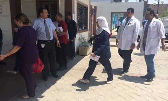 Các nhân viên y tế đến sân bay quốc tế Cairo. Ảnh: The Guardian