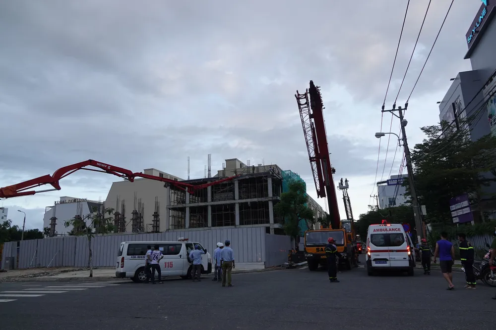 Được biết, trong quá trình đổ bê tông dầm sàn tầng 4 của công trình, xe bơm bê tông BKS 43C-000.01 thuộc xe Công ty CP bê tông Đăng Hải Đà Nẵng (Xô Viết Nghệ Tĩnh, phường Hoà Cường Nam, quận Hải Châu, TP Đà Nẵng) bị sự cố gãy cần bơm bê tông, rơi xuống trúng 4 công nhân đang thi công tại tầng 4 công trình. Tại thời điểm xảy ra tai nạn, có 2 công nhân đang điều khiển cần bơm của xe bơm bê tông.