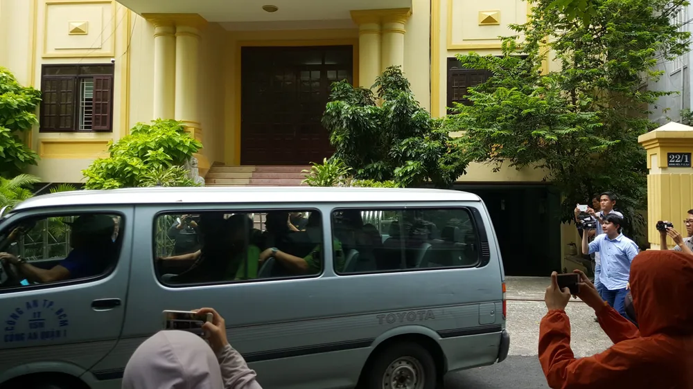 Theo đó, khoảng 10 giờ 30 ngày 3-10, ông Nam được phía công an áp giải tới văn phòng làm việc tại trụ sở sở TAND quận 4, nằm trên đường Hoàng Diệu bằng ôtô. Sau khi xe di chuyển vào bên trong trụ sở thì lực lượng bảo vệ TAND quận 4 đã kéo cổng lại. Phía bên ngoài có rất nhiều phóng viên theo dõi để đưa tin.