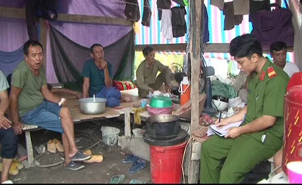 Công an TP Uông Bí (Quảng Ninh) lấy thông tin từ người dân quanh khu vực nhà nạn nhân phục vụ công tác điều tra. Ảnh: Báo Quảng Ninh