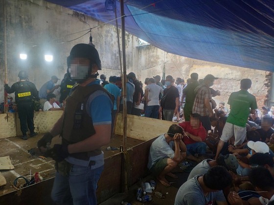 Thời điểm ập vào, công an phát hiện và bắt quả tang hàng trăm con bạc đang sát phạt bằng hình thức đá gà ăn tiền. Lúc này, một số con bạc tìm cách bỏ chạy nhưng bị lực lượng khống chế.