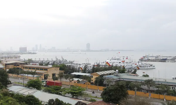 Đứng trên khu du lịch sinh thải biển Tiên Sa có thể nhìn thấy rõ cảng quân sự của Vùng 3 Hải quân và Cảng Tiên Sa. Ảnh: Nguyên Khôi