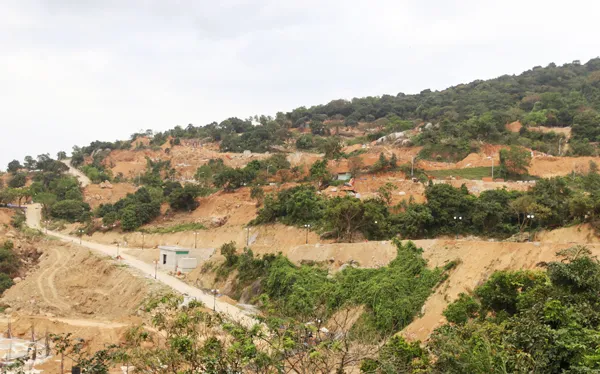 Mặc dù chưa được cấp phép nhưng chủ đầu tư đã cho xây dựng 40 phần móng biệt thự trên núi Sơn Trà. Ảnh: Nguyên Khôi