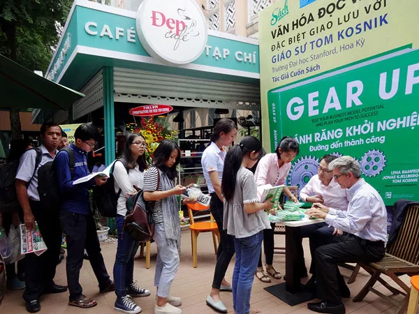(SGGPO).- Sáng 20-8, tại sân khấu trung tâm đường sách Nguyễn Văn Bình, rất nhiều độc giả Việt Nam đã có buổi giao lưu sôi nổi cùng “vua khởi nghiệp” - GS Tom Kosnik.
