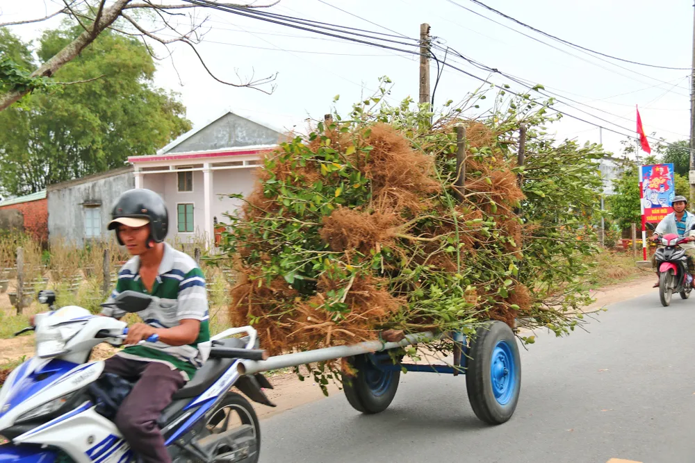 Xe chở "xác" cây quất từ khắp nơi đến bán cho các chủ vườn. Ảnh: NGỌC PHÚC