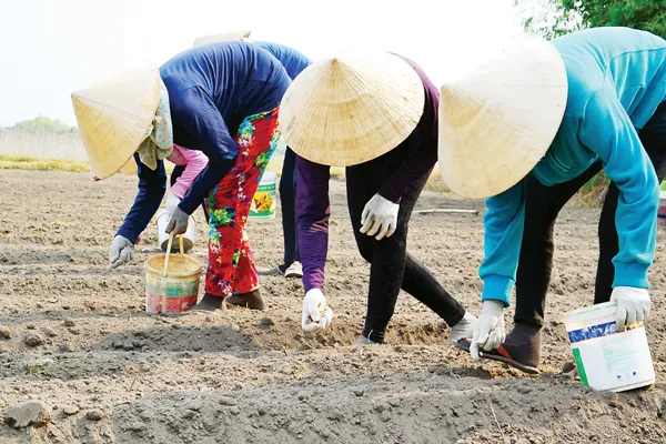 Sau khi thu hoạch vụ đông xuân, một số nông dân tranh thủ xuống giống đậu phộng để tiếp tục một mùa vụ khác