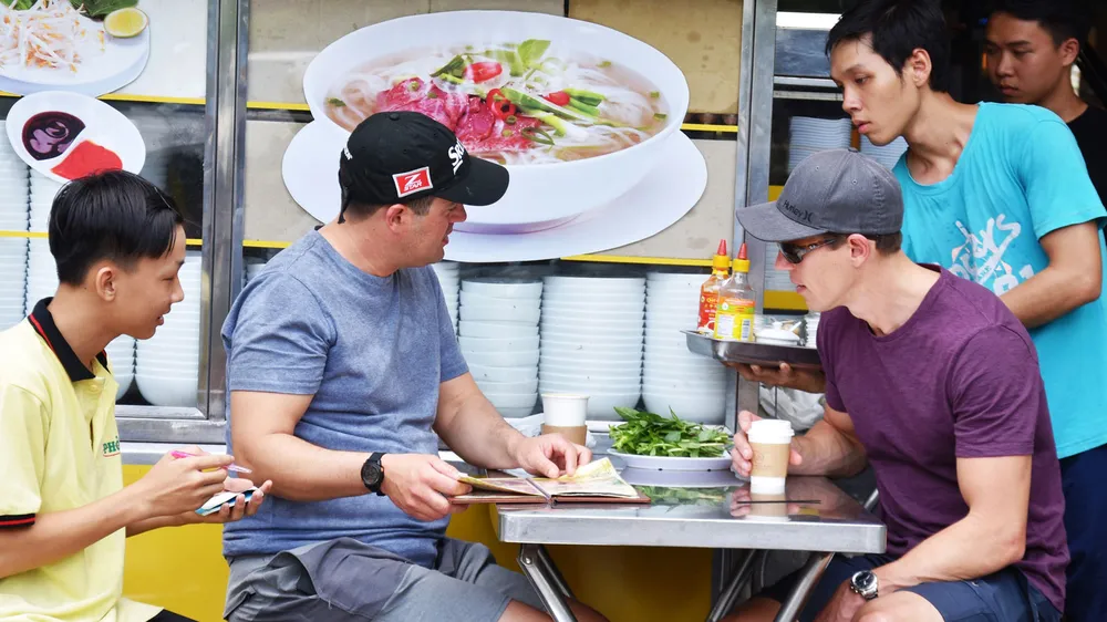Du khách thưởng thức ẩm thực Việt Nam tại "Khu phố Tây" Phạm Ngũ Lão. Ảnh: VIỆT DŨNG