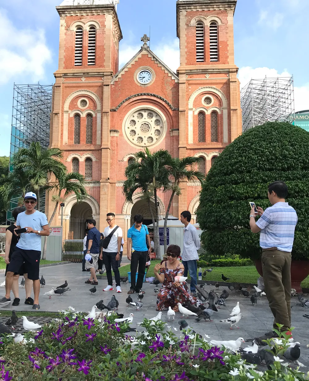 Người dân vui chơi khu vực Nhà thờ Đức Bà. Ảnh: VIỆT DŨNG