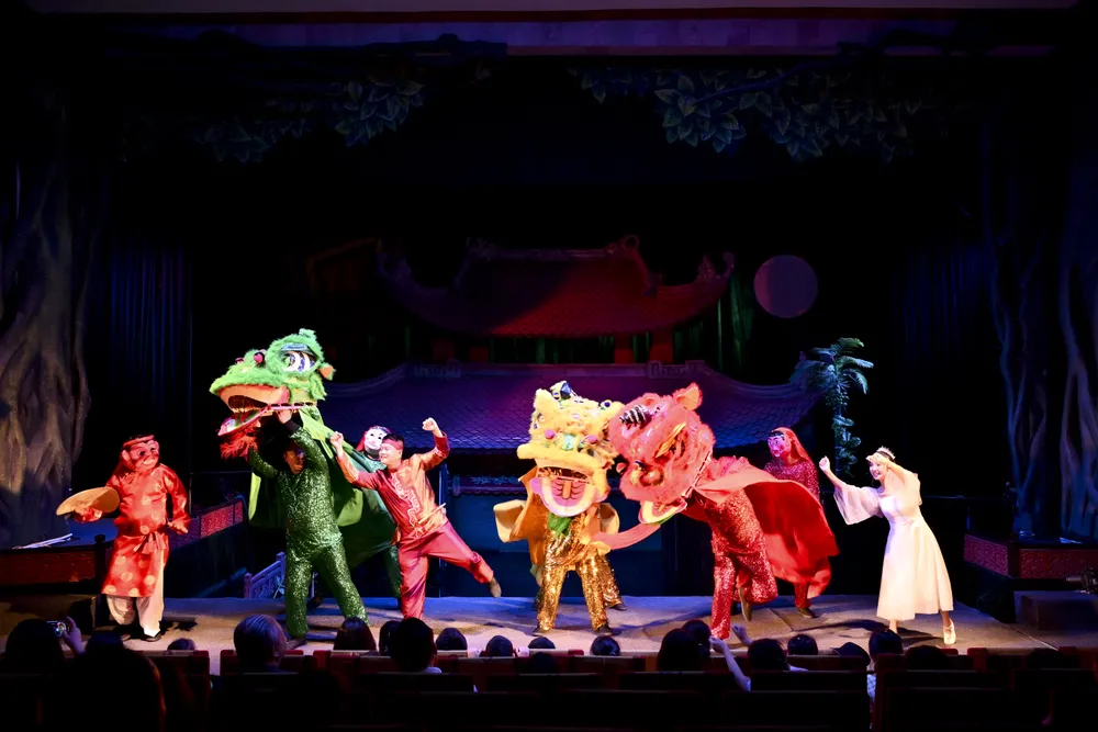 Trong khoảng 1 giờ đồng hồ các bạn nhỏ sẽ được lạc vào thế giới của chính các bạn, không gian sân khấu liên tục thay đổi mang đến hiệu quả độc đáo cho khán giả. Từ mặt nước thủy đình của nghệ thuật múa rối nước quen thuộc đến không khí lễ hội náo nhiệt của đêm rằm Trung thu truyền thống, phiên chợ Ba Tư huyền bí, đường thỉnh kinh gập gềnh trắc trở của thầy trò Đường Tăng, thế giới băng tuyết lung linh của chị em công chúa tuyết Elsa Anna, khu rừng náo nhiệt của Bạch Tuyết và bảy chú lùn... Các nhân vật cổ tích được tạo hình đa dạng sắc nét với tính cách đặc trưng của mỗi nhân vật làm cho thiếu nhi cảm thấy gần gũi thân thuộc.