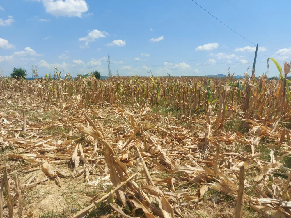 | Ruộng bắp bị khô cháy ở xã Hương Thủy |