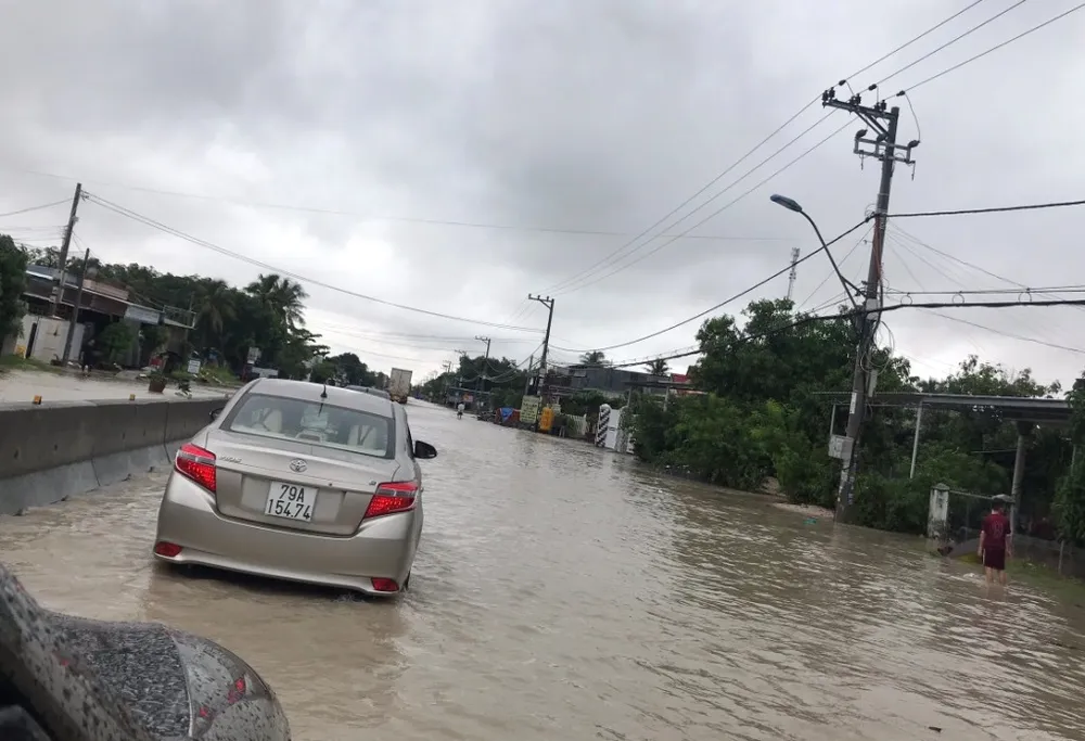 Theo ghi nhận của PV Báo SGGP, tuyến QL1A đoạn qua TP Cam Ranh hiện có nơi ngập sâu hơn nửa bánh xe, kéo dài hàng kilômét. Có đoạn ngập sâu, xe ô tô con phải đi đường vòng để tránh ngập.