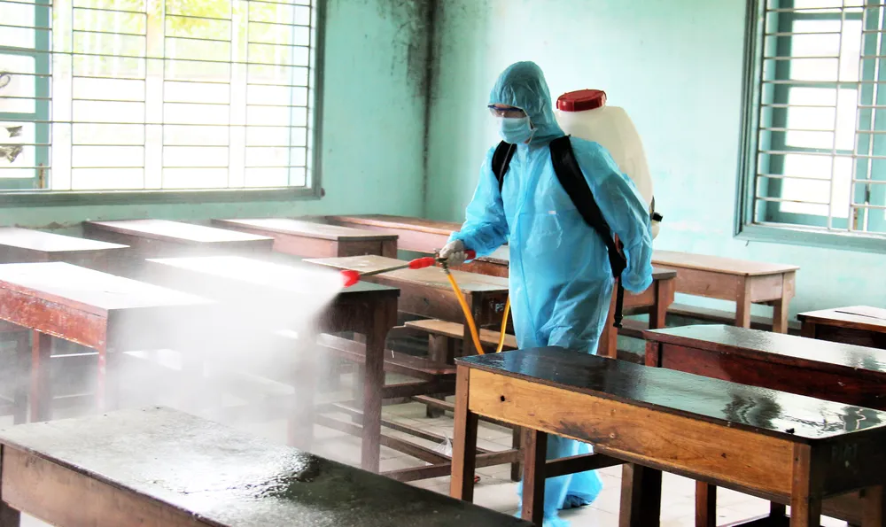 Tất cả các phòng thi, điểm thi tại Quảng Nam đều được phun khử trùng, sát khuẩn. Ảnh: NGỌC PHÚC.