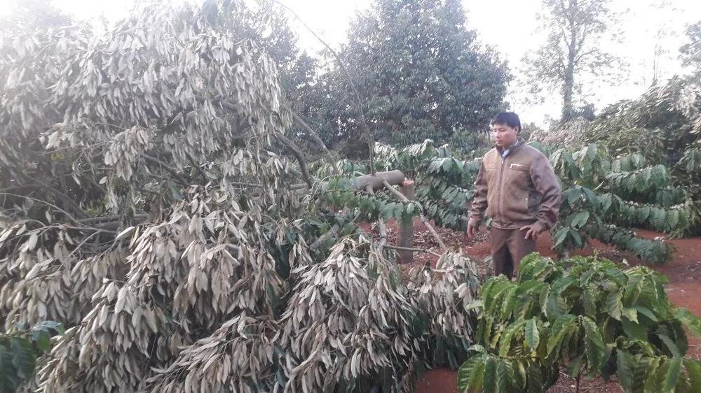 Theo chị Võ Thị Ly (thôn Tân Lập 3, xã Pơng Drang), sáng 26-1 (mùng 2 Tết), khi chị ra rẫy thì tá hỏa phát hiện vườn sầu riêng của mình đã bị kẻ xấu chặt phá hàng loạt. Qua kiểm tra, chị phát hiện có tổng cộng 58 cây sầu riêng 11 năm tuổi, hàng chục cây cà phê cùng nhiều đoạn ống nước bị kẻ xấu chặt phá.