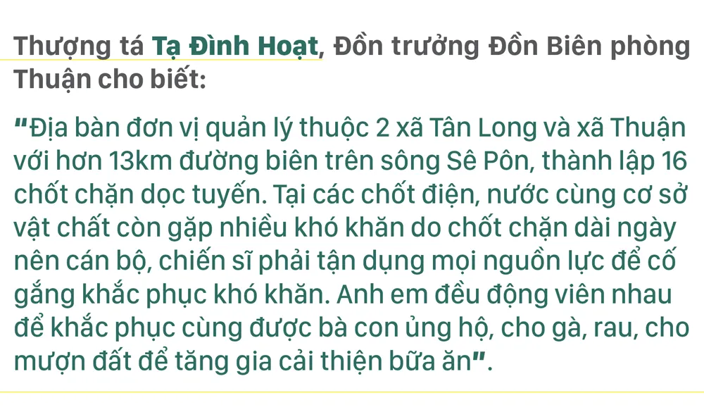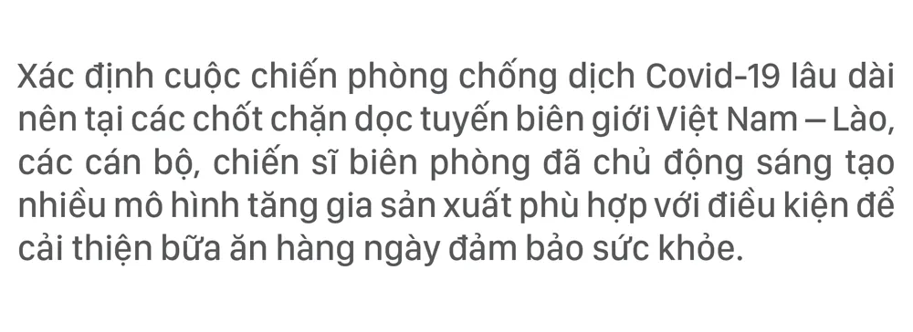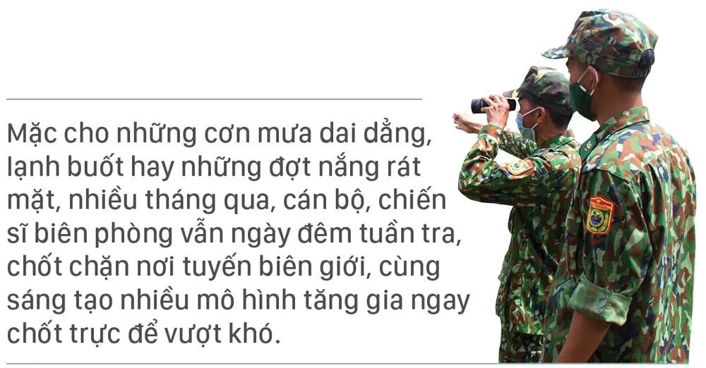 Mặc cho những cơn mưa dai dẳng, lạnh buốt hay những đợt nắng rát mặt, nhiều tháng qua, cán bộ, chiến sĩ biên phòng vẫn ngày đêm tuần tra, chốt chặn nơi tuyến biên giới, cùng sáng tạo nhiều mô hình tăng gia ngay chốt trực để vượt khó.