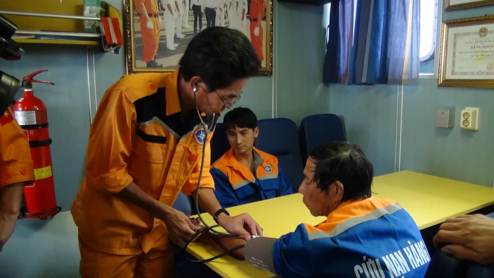 Nhân viên y tế trên tàu SAR 412 chăm sóc sức khoẻ cho các thuyền viên