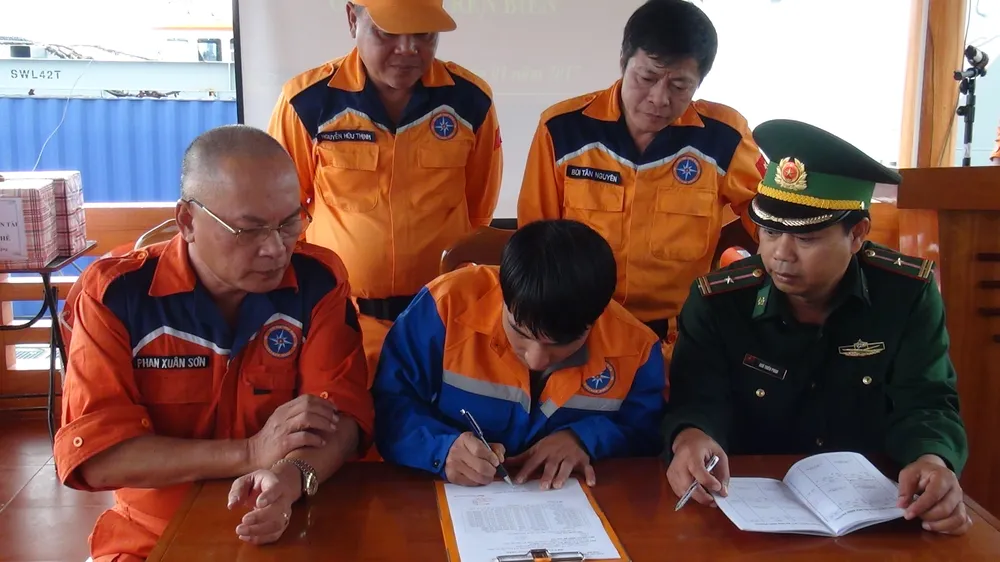 Tại lễ bàn giao ngư dân cùng tàu cá bị nạn cho các cơ quan địa phương, lãnh đạo Trung tâm đã chuyển lời động viên thăm hỏi cùng quà tặng của Bộ trưởng Bộ GTVT, Cục trưởng Cục Hàng hải Việt Nam cho các thuyền viên gặp nạn.