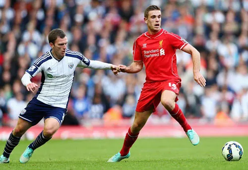 Jordan Henderson (phải, Liverpool) sau khi ký hợp đồng mới sẽ chơi với sự hứng khởi trước West Brom.