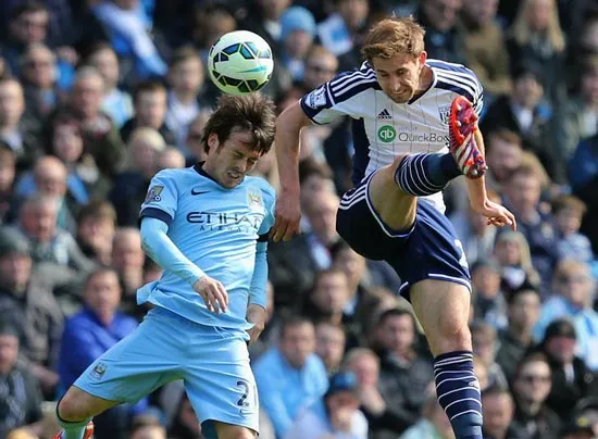 David Silva (trái, Man.City) tranh bóng với Craig Dawson (West Brom)
