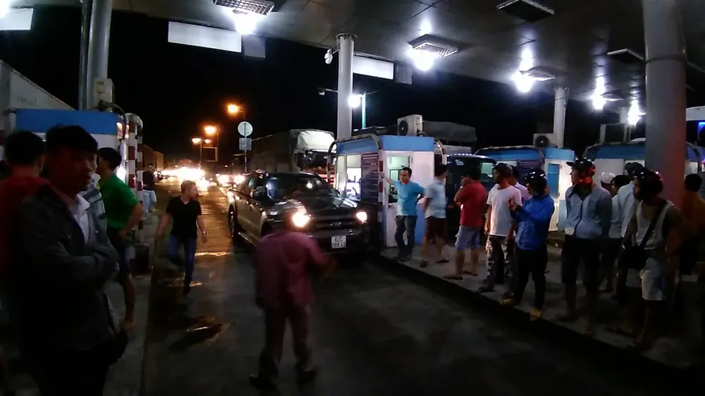 Lúc 19 giờ 5 phút, nhóm người đi trên chiếc xe ô tô lúc đầu bắt đầu rời đi, Trạm BOT Sông Phan đã cơ bản thông thoáng trở lại.