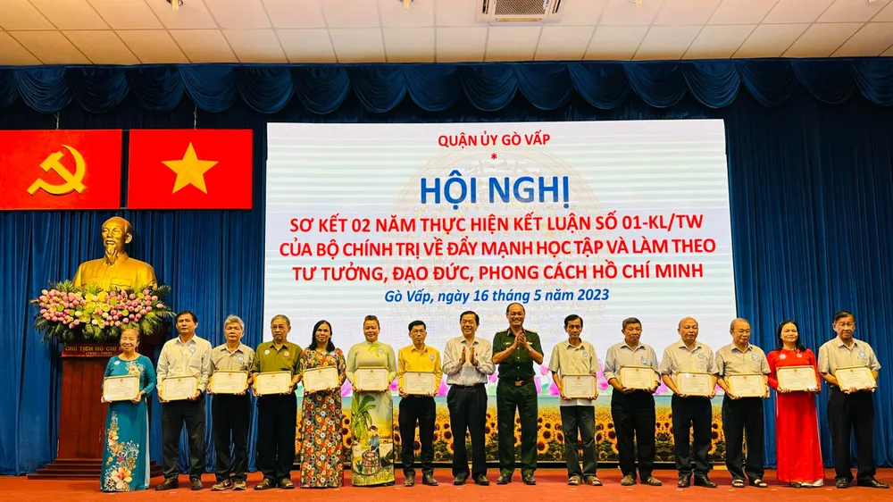 Dịp này, Quận ủy quận Gò Vấp đã tuyên dương 79 tập thể và 130 cá nhân thực hiện tốt việc học tập và làm theo tư tưởng, đạo đức, phong cách Hồ Chí Minh.
