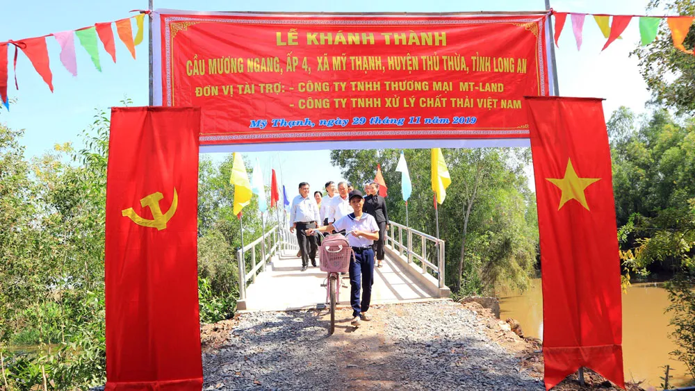 Cũng tại buổi khánh thành cầu Mương Ngang, Ông Dương Văn Tuấn, Bí thư huyện Ủy, Chủ tịch HĐND huyện Thủ Thừa, tỉnh Long An, đã đại diện các tài trợ trao 150 triệu đồng cho xã Mỹ Thạnh để tiếp tục xây dựng cầu giao thông nông thôn trong xã.
