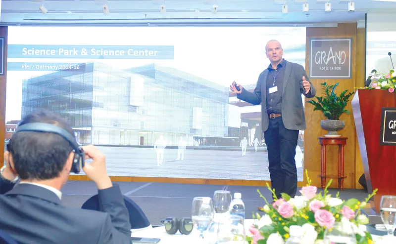 Giáo sư Jorg Rainer Noenning trình bày tham luận tại hội nghị. Ảnh: CAO THĂNG