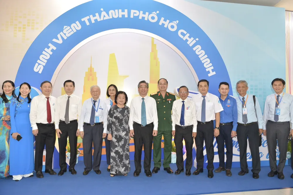 Lãnh đạo các cơ quan, sở, ngành tham dự Đại hội đại biểu Sinh viên Việt Nam TPHCM lần thứ VII, nhiệm kỳ 2023-2028. Ảnh: CAO THĂNG |