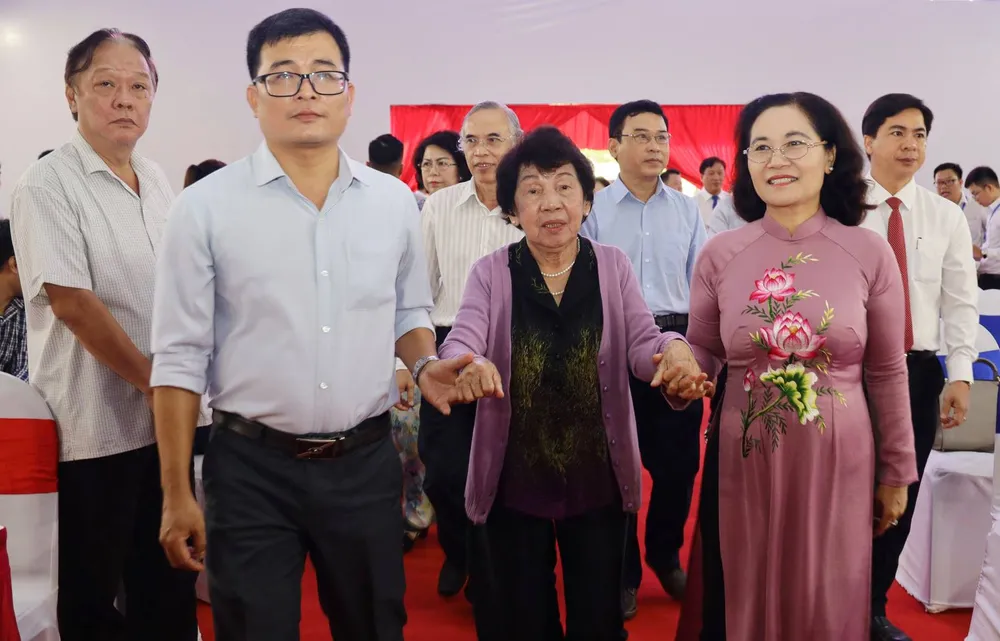 Bà Tôn Thị Tuyết Dung, con gái của Chủ tịch Tôn Đức Thắng, tham dự Lễ khởi công Xây dựng mới Bảo tàng Tôn Đức Thắng. Ảnh: DŨNG PHƯƠNG