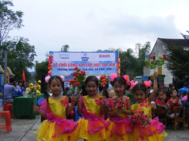Nhân dịp khởi công, Công ty Suntory PepsiCo Việt Nam đã trao tặng 140 suất quà (trị giá 450.000đồng/suất), với kinh phí 64 triệu đồng cho 140 cháu thuộc điểm trường Trà Lân. Mỗi suất quà bao gồm 2 chiếc áo khoác, 1 chăn ấm, 1 đôi giày, 1 ba lô, vở và bút màu,…