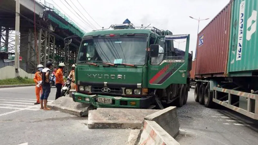 Khoảng 13 giờ, ngày 13-6, xe ben chở đá bi mang BKS : 60C - 9466 đang lưu thông hướng từ ngã tư Thủ Đức về cầu Sài Gòn, TPHCM thì bị mất lái. Chiếc xe này đã húc văng hàng loạt dải phân cách, lao qua làn đường dành cho xe máy làm nhiều người tham gia lưu thông hoảng sợ và giao thông qua khu vực ùn ứ.