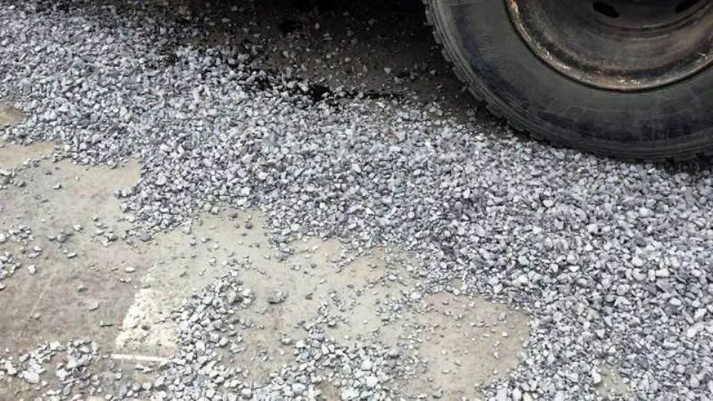 Tại hiện trường, phần đầu của chiếc xe ben bị hư hỏng, nhíp và 2 bánh trước gãy cong, nhiều đá trên xe rơi vãi xuống đường, hàng chục mét dải phân cách bị húc văng hư hỏng.