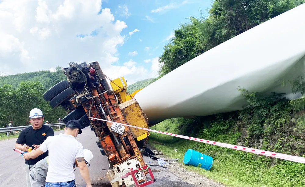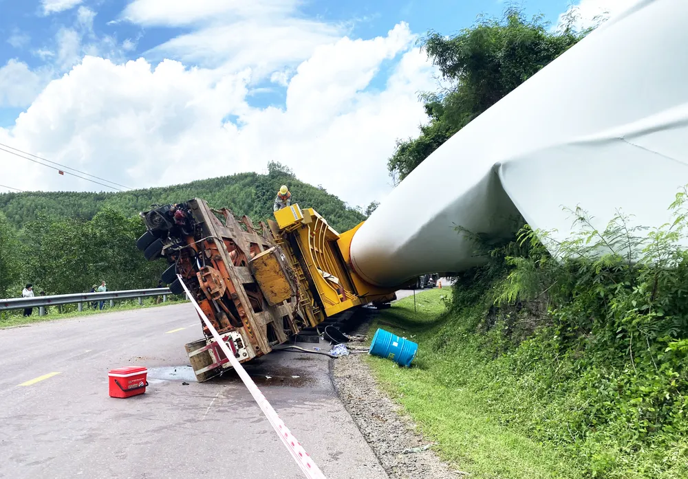Vụ tai nạn xảy ra vào khoảng 10 giờ cùng ngày. Thời điểm trên, xe đầu kéo mang BKS 43C-167.34 kéo theo rơ moóc mang BKS 43R-000.05 chở hàng siêu trường siêu trọng là cánh quạt điện gió nặng khoảng 19 tấn, đi từ hướng tỉnh Bình Định đến Gia Lai. Khi đến Km 60+300 thuộc QL19, đoạn đèo An Khê thì bất ngờ bị lật vào sườn núi.