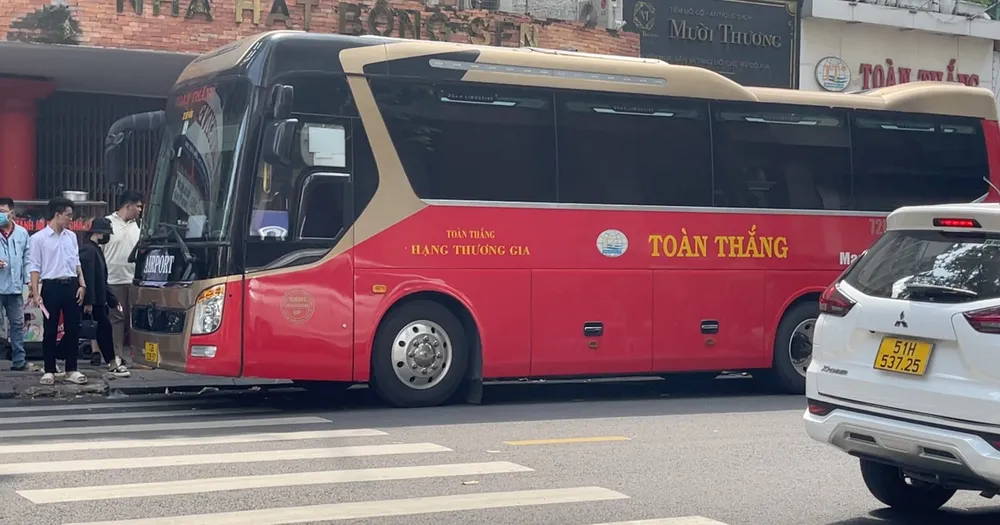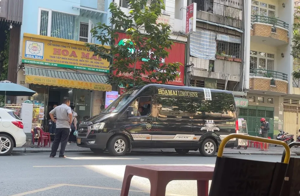 Chỉ trong vòng chưa tới 30 phút, phóng viên bắt gặp nhiều xe khách 16 chỗ của nhà xe Hoa Mai thản nhiên đậu xe chiếm dụng lòng đường, biến nơi đây thành điểm tập kết khách. Sau khi đón khách, các phương tiện chạy về hướng ra đường Võ Văn Kiệt, qua hầm Thủ Thiêm đi về tỉnh Bà Rịa – Vũng Tàu.