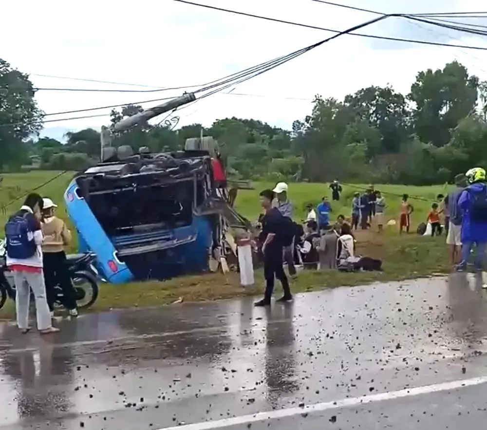 Khi xe lưu thông đến địa điểm trên thì trời có mưa nhẹ, xe khách bị chao đảo rồi lao vào bên lề đường, lộn vòng, rồi lật ngửa.