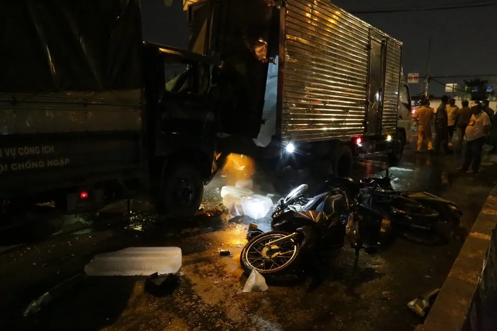 Khuya ngày 6-9, Công an quận Bình Tân, TPHCM mới hoàn tất việc khám nghiệm hiện trường, lấy lời khai các nhân chứng, điều tra làm rõ vụ xe ô tô 7 chỗ tông nhiều xe máy khiến ít nhất 3 người nhập viện.