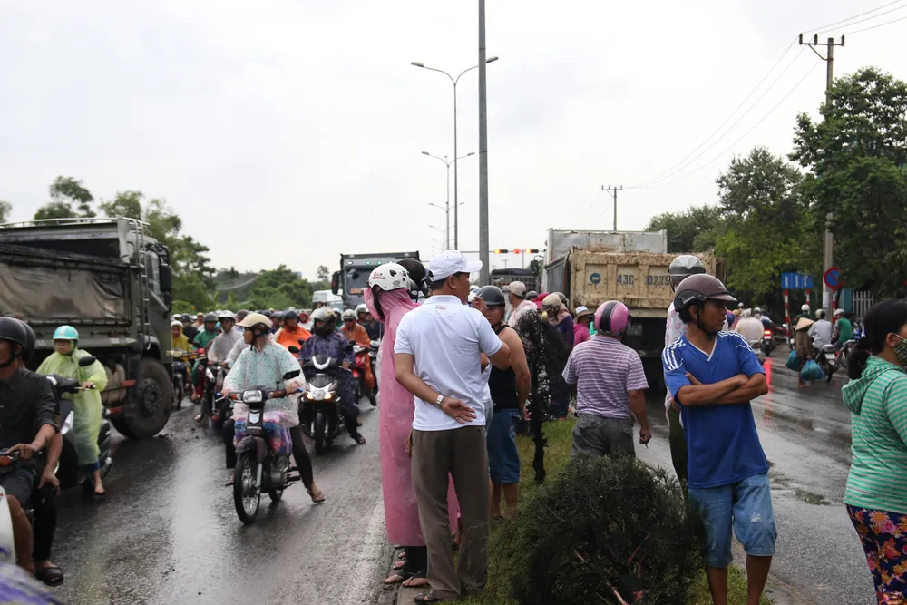 Vụ tai nạn xảy ra lúc giờ cao điểm khiến giao thông qua Quốc lộ 1A bị ùn tắc nghiêm trọng.