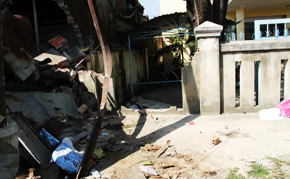Ngôi nhà bị đâm sập này được bà Lạc dùng để làm quán giải khát. Rất may vụ tai nạn không gây thiệt hại về người và khách.