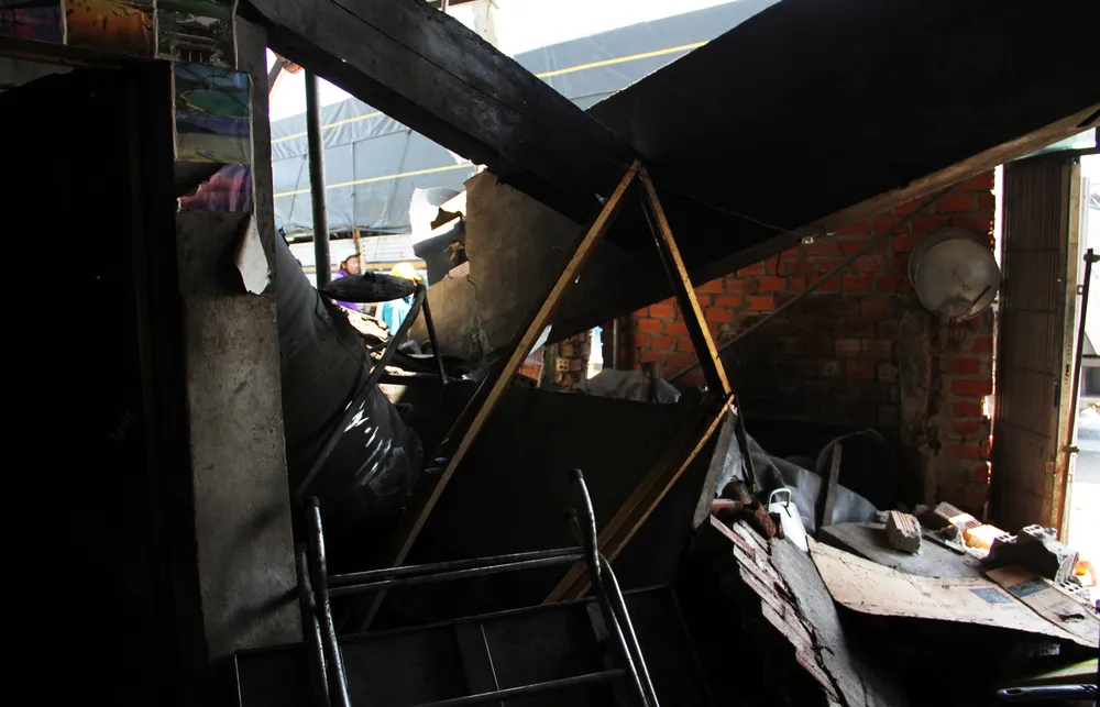 Ngôi nhà bà Lạc bị xe tải đâm hư hỏng nặng, tường bê tông bị đổ sập, rạn, nứt... Ngoài ra, xe tải cũng làm 3 chiếc xe máy trong ngôi nhà bị hư hỏng nặng…