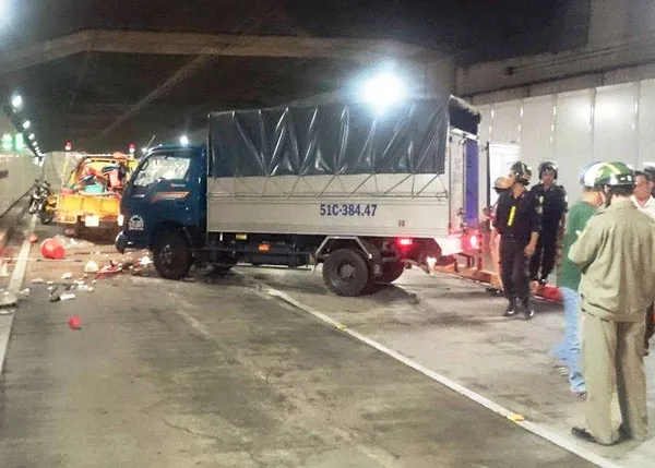 Thông tin ban đầu cho biết, tai nạn xảy ra lúc 23 giờ. Khi đó xe tải (loại 1,5 tấn) biển kiểm soát 51C – 384.47 lưu thông qua hầm (hướng quận 2 đi quận 1) với tốc độ rất nhanh, đến giữa hầm, tài xế bất ngờ bị mất lái khiến xe tông vào một xe bồn chở nước và hất văng nhiều công nhân đang rửa đường.