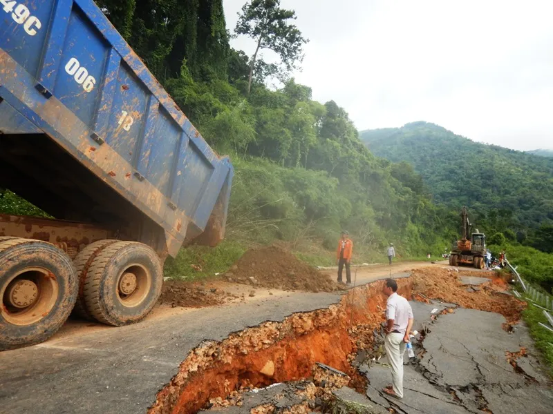 Trước đó, do ảnh hưởng của đợt mưa lớn, ngày 15-10, trên tuyến Quốc lộ 28B đoạn qua xã Phan Sơn, Phan Lâm, huyện Bắc Bình (tỉnh Bình Thuận) xuất hiện 11 điểm sạt lở nghiêm trọng. Trong đó, tại khu vực giữa đèo Đại Ninh (Km 46+100, xã Phan Sơn), đoạn đường bị sụt lún rất nghiêm trọng kéo dài 50m, ngang 5m, sâu 1,5m khiến giao thông từ tỉnh Bình Thuận đi Lâm Đồng và ngược lại bị tê liệt hoàn toàn.