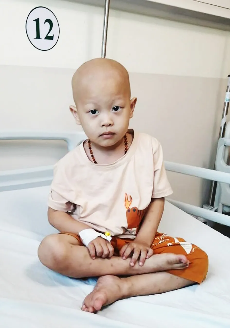 Chị Giàu đã vay 80 triệu đồng, đưa con đến Bệnh viện Ung bướu TPHCM để chữa trị. Theo phác đồ điều trị, bé Nhân phải vô 18 toa hóa chất, nhưng mới vô đến toa thứ 4, bé không đáp ứng thuốc tốt, bị nổi hạch 2 bên bẹn nên bác sĩ phải đổi phác đồ điều trị. Mỗi toa thuốc hơn 8 triệu đồng do nằm ngoài danh mục BHYT.