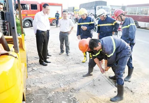 Cảnh sát PCCC TP tham gia xử lý khi tai nạn xảy ra.