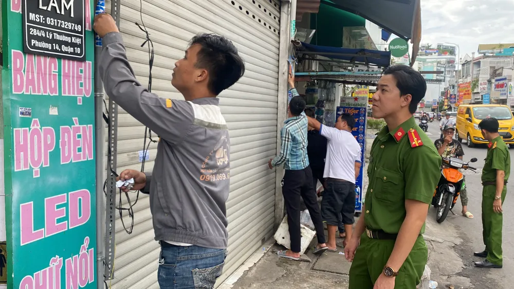 Trong quá trình ra quân đồng loạt, ngoài việc bóc gỡ quảng cáo sai quy định, lực lượng công an thu thập các số điện thoại được dán ở trụ điện, tường… Qua đó, Công an xã Vĩnh Lộc B (huyện Bình Chánh), Công an phường 10 (quận Tân Bình) phát hiện 5 đối tượng làm nghề hút hầm cầu có hành vi dán quảng cáo trái phép, gây mất mỹ quan đô thị.